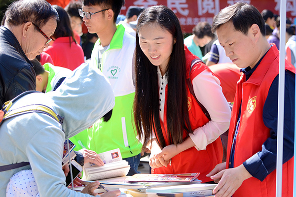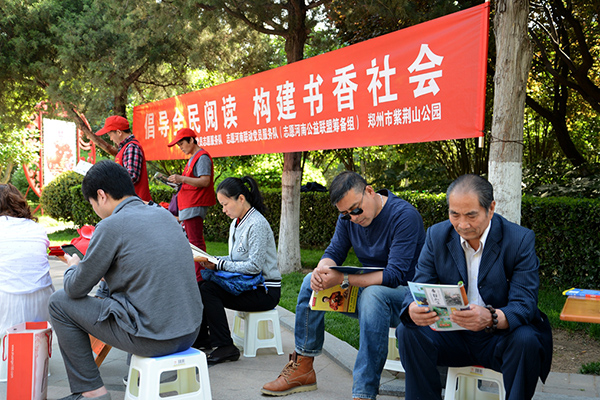 喜迎“世界讀書日” 鄭州紫荊山公園支起愛(ài)心書攤